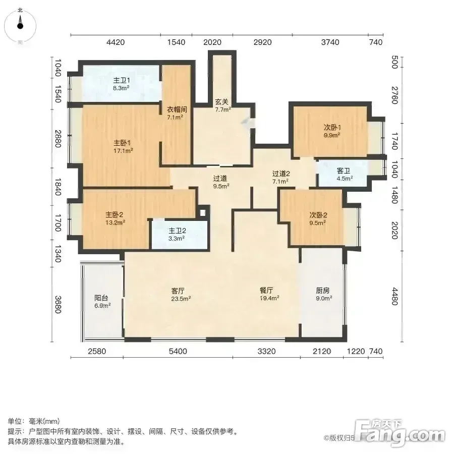 户型齐全,主打户型方正,主卧带卫,带衣帽间,大面宽阳台四居