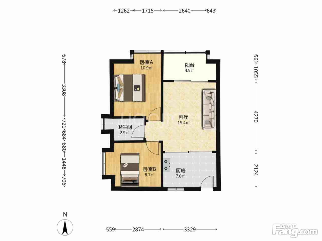 户型齐全,主打户型方正,明卫,客厅朝南二居