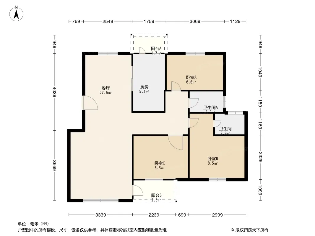 户型齐全,主打户型方正,明厨,明卫,双卧朝南,主卧朝南三居