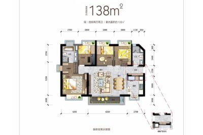 户型齐全,主打户型方正,主卧带卫,带衣帽间,大面宽阳台四居
