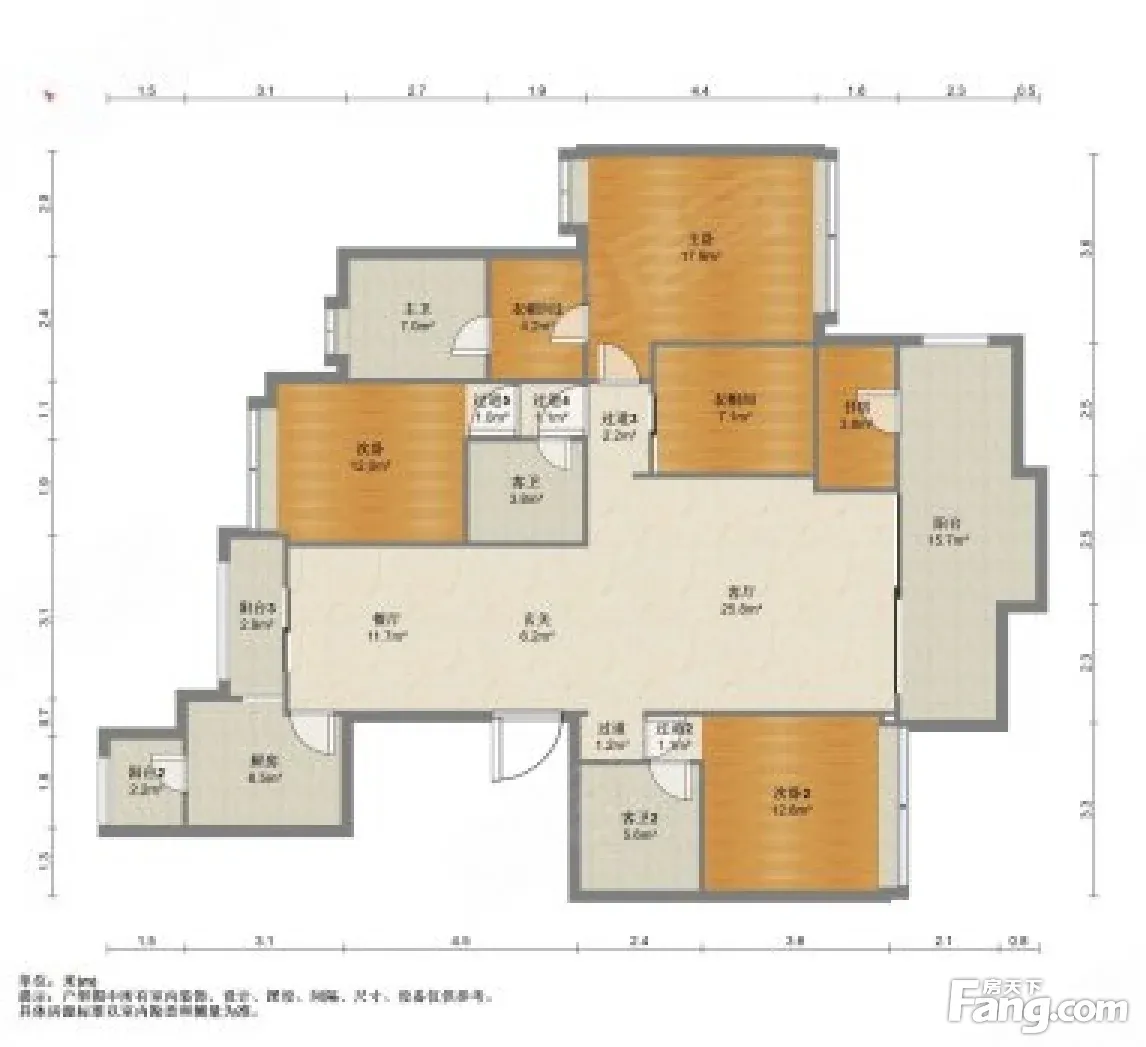 万达公馆 190平方4房2厅 南北通透高层通风采光好