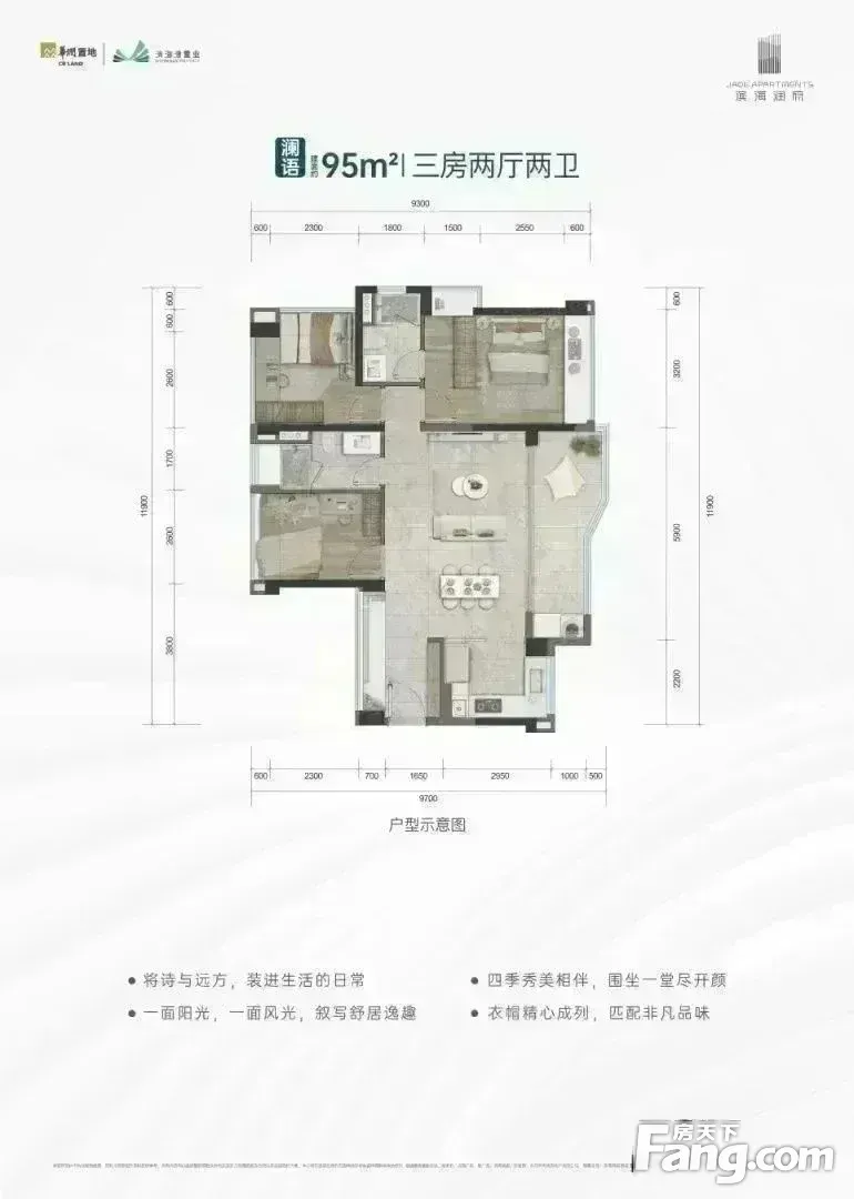 滨海湾中轴 万象超核体 携手滨海湾置业打造 总占地面积14.7万㎡ 总户数1077套 户型面积 95 125 143 3到4房 一级品牌 华润置业深耕东莞