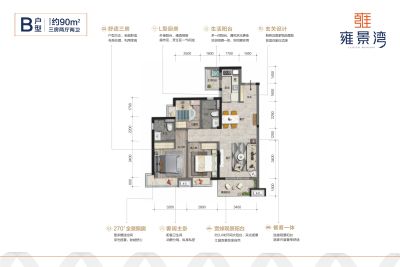 招商雍景湾 3室2厅 92.63平
