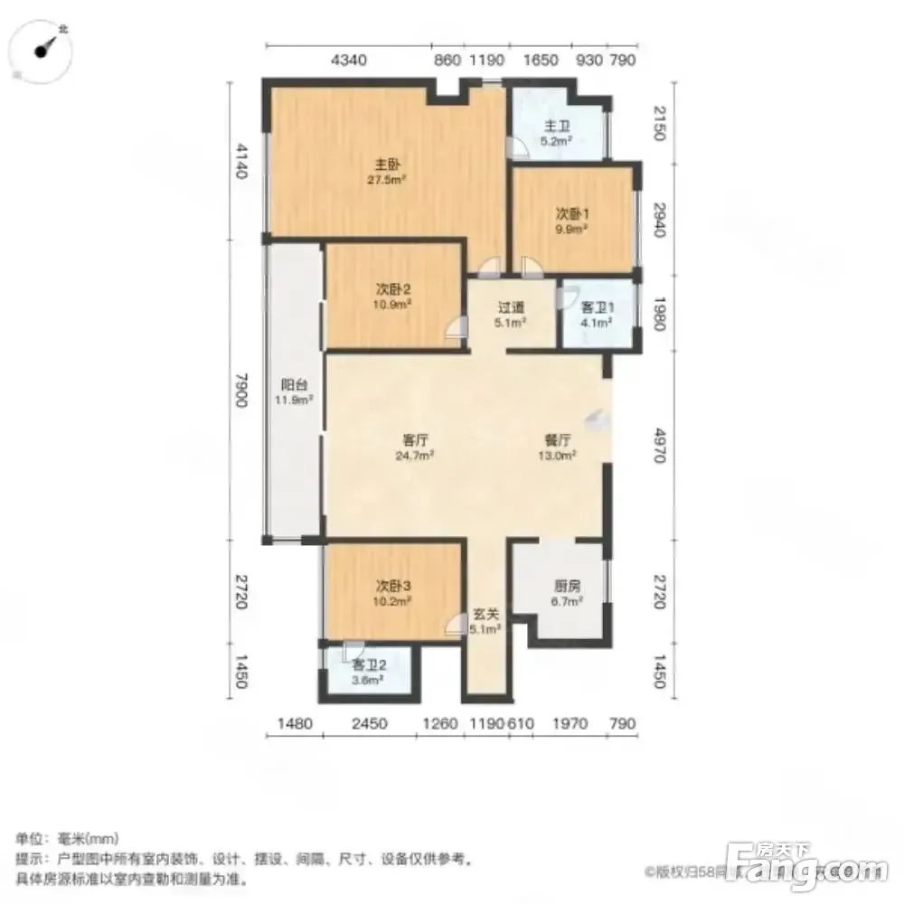房屋拥有相对宽松的尺寸,布局通透,动静分离,设计豪华