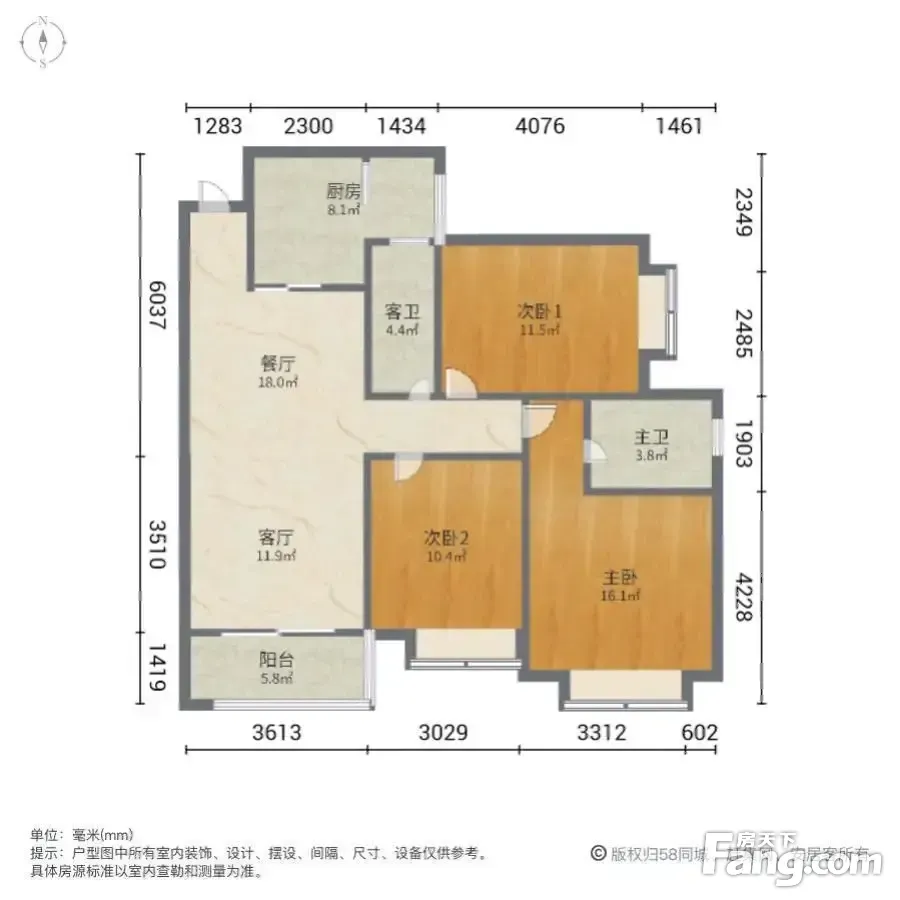 户型齐全,主打采光充足,客厅朝南,主卧朝南,主卧带卫三居