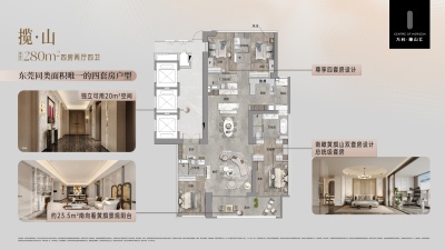 万科·瑧山汇户型主要有280平-325平的全明格局,户型方正,采光充足,主卧套间,开放厨房,大面宽阳台,中西双厨的四居 。