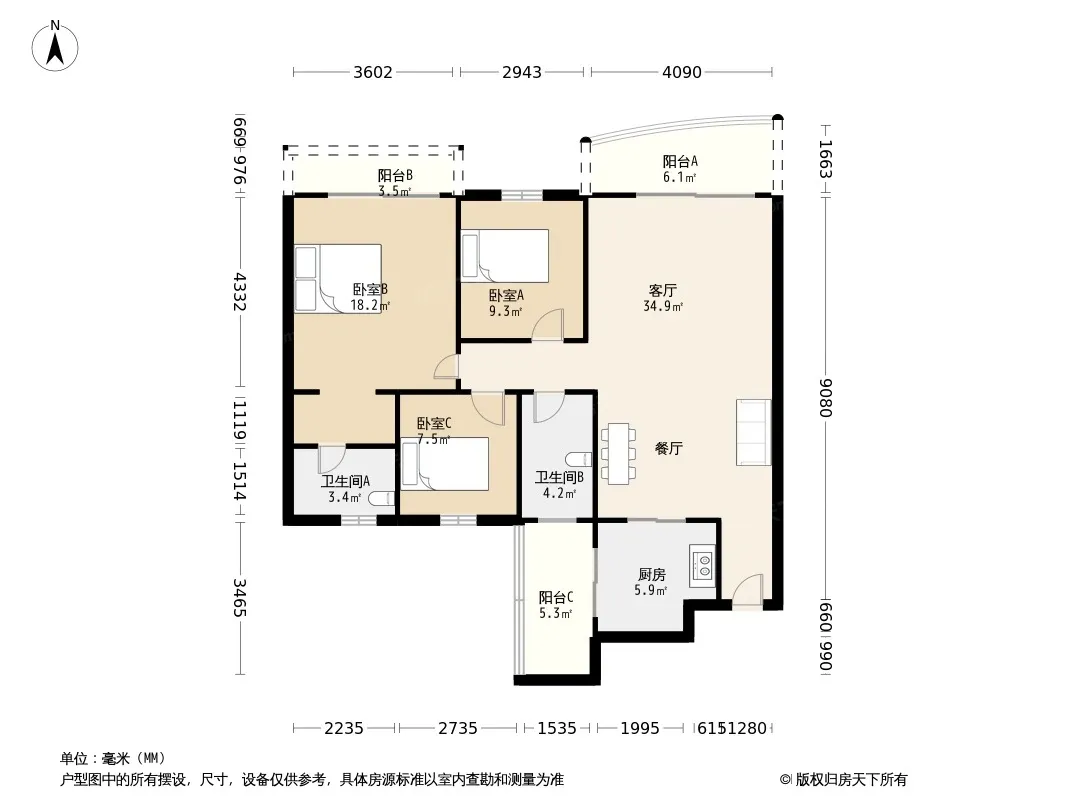 户型齐全,主打户型方正,明厨,双阳台三居