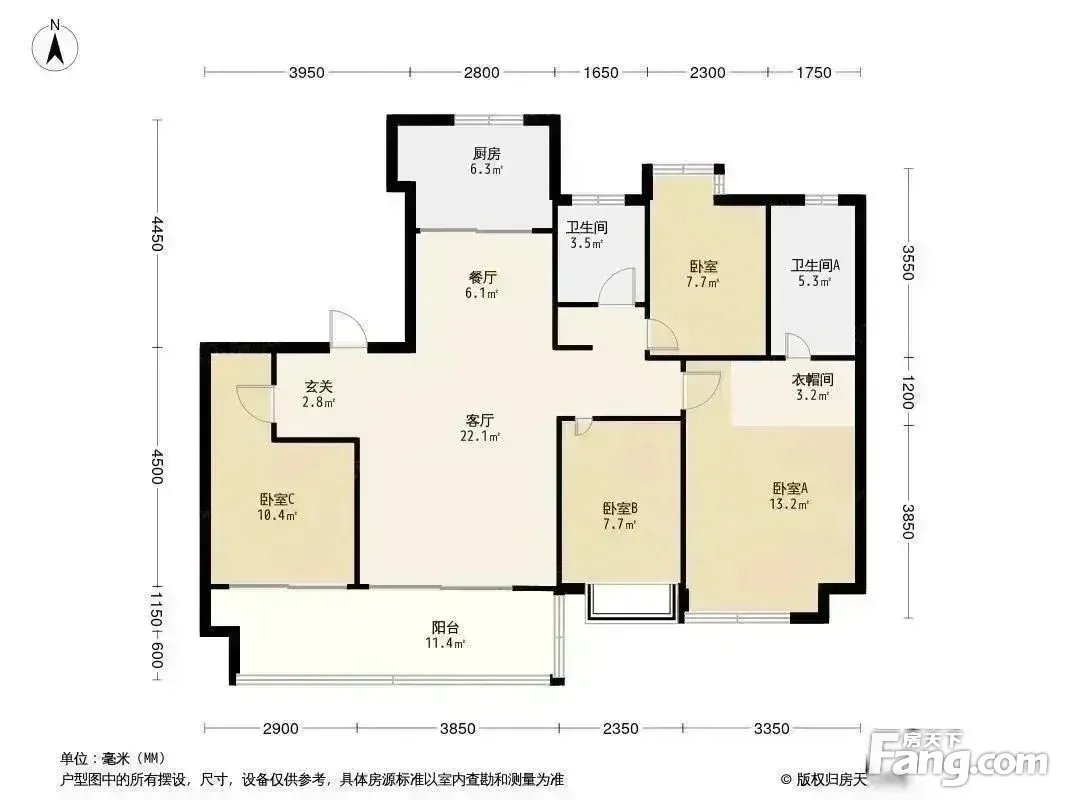 户型齐全,主打全明格局,三开间朝南,主卧带卫,观景飘窗,带衣帽间,明厨明卫,干湿分离,大面宽阳台三居