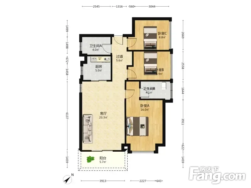 3室2厅1卫