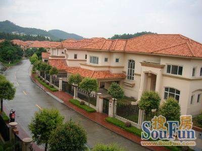 别墅群位于黄旗山源板块,有高尔夫球场及虎英湖绿化