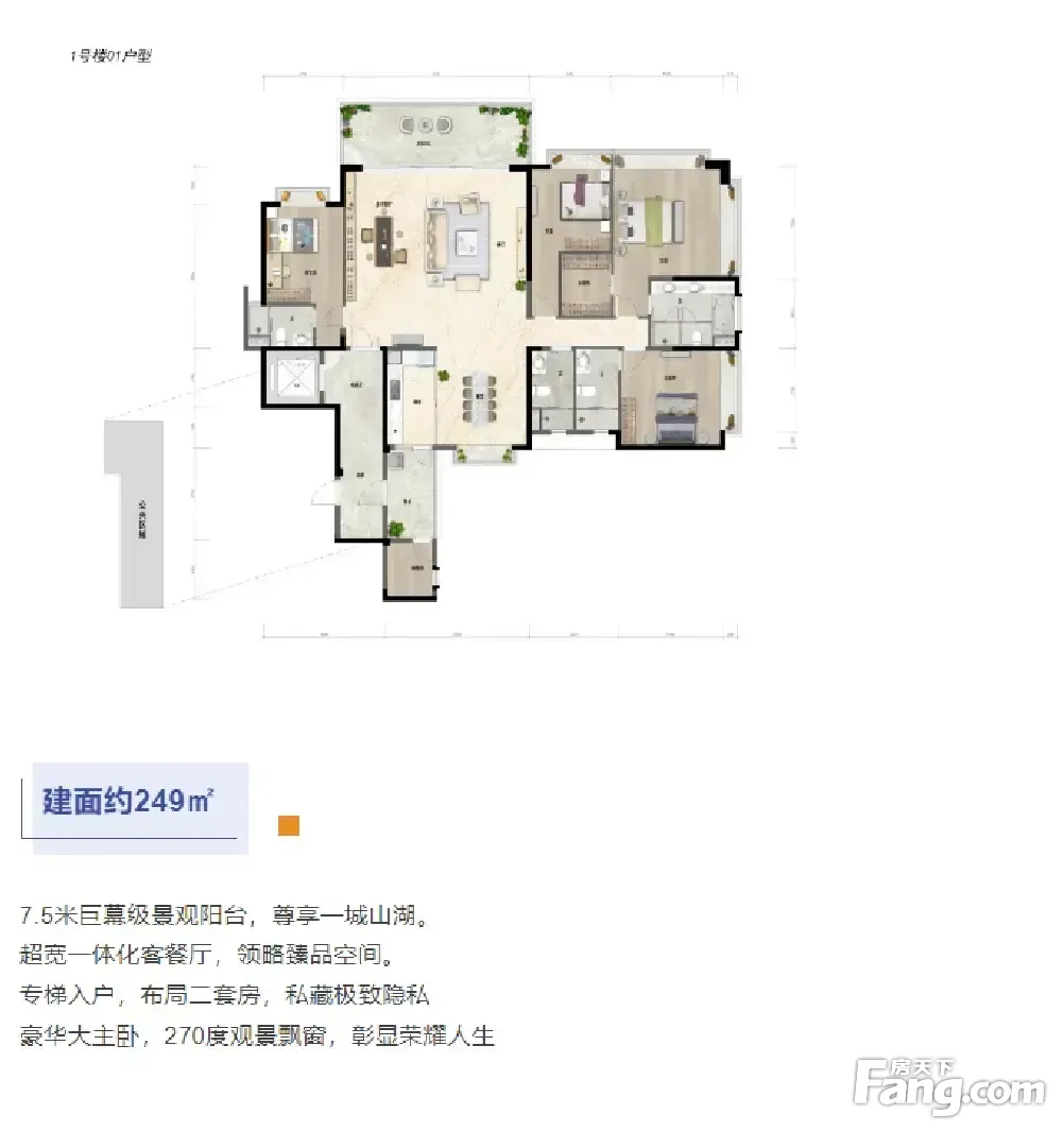 【建面131㎡4居】层高3.00米,总楼层32F 【建面125㎡4居】 【建面136㎡4居】 【建面143㎡4居】 【建面249㎡5居】分布于1栋 ,2梯3户,总楼层32F