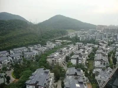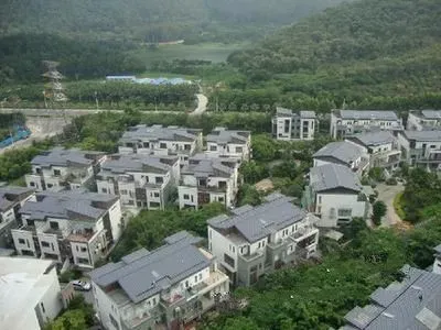 别墅群位于黄旗山源板块,有高尔夫球场及虎英湖绿化