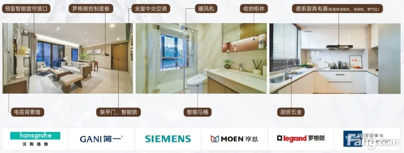 雅奢装修:国际一线品牌,德系装修 金众 TOP 级公馆系打造人居标杆,高品质标准,打造约98-138㎡ 3-5房,国际一线大牌交标,全德系精装厨房。