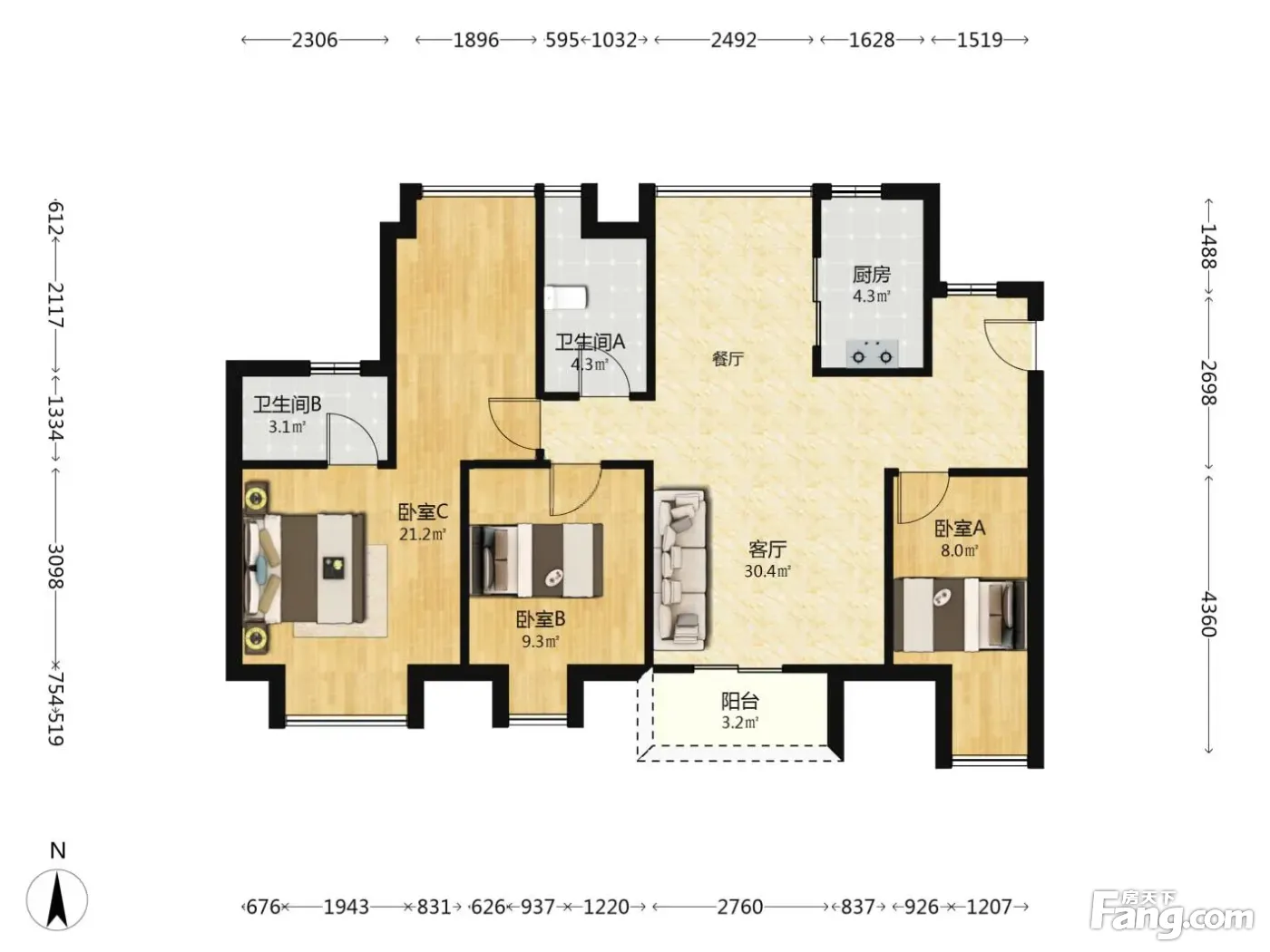 3室2厅1卫
