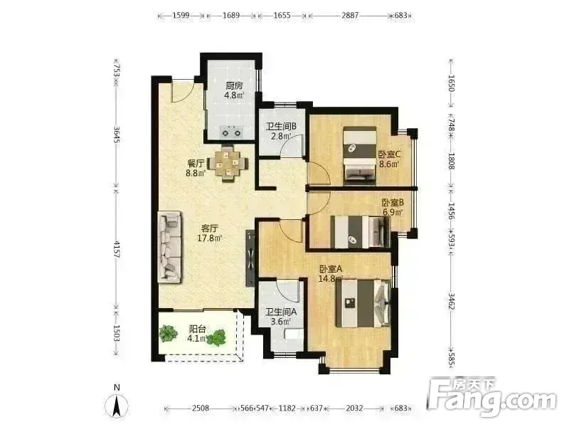 虎门万科云城 3室2厅 90.93平