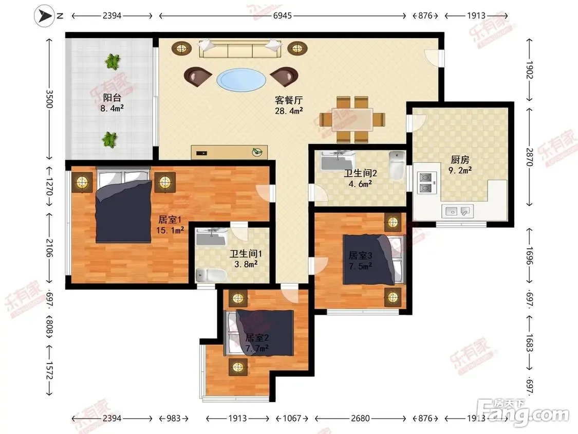 3室2厅1卫