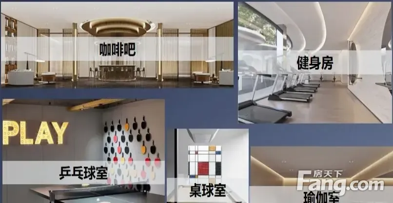 下沉式休憩空间,内设有咖啡吧、书吧、乒乓球室、桌球室、健身房、瑜伽室,满足室内运动、社交、会客等需求 园林配套2.5 万平,相当于 60 个篮球场大小~~