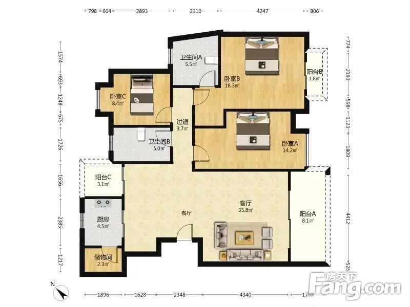 3室2厅1卫