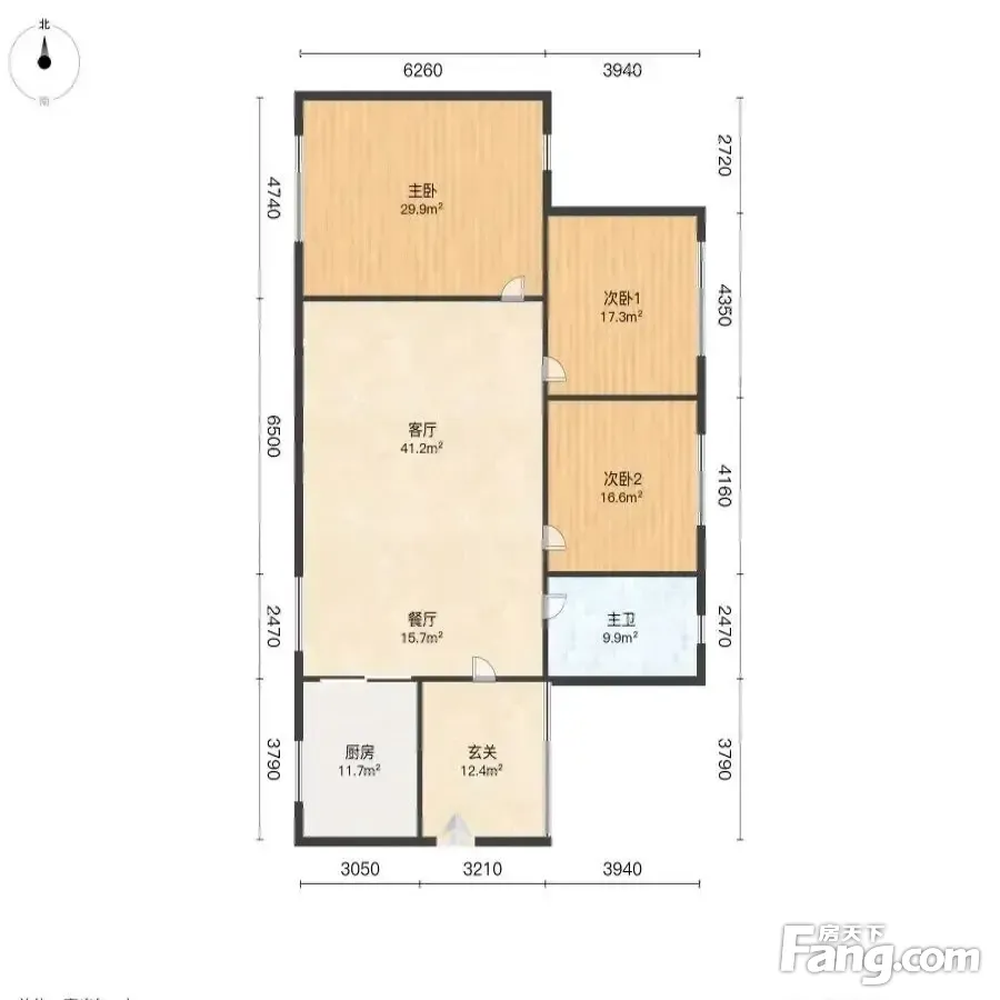 户型齐全,主打采光充足,客厅朝南,主卧朝南,主卧带卫三居