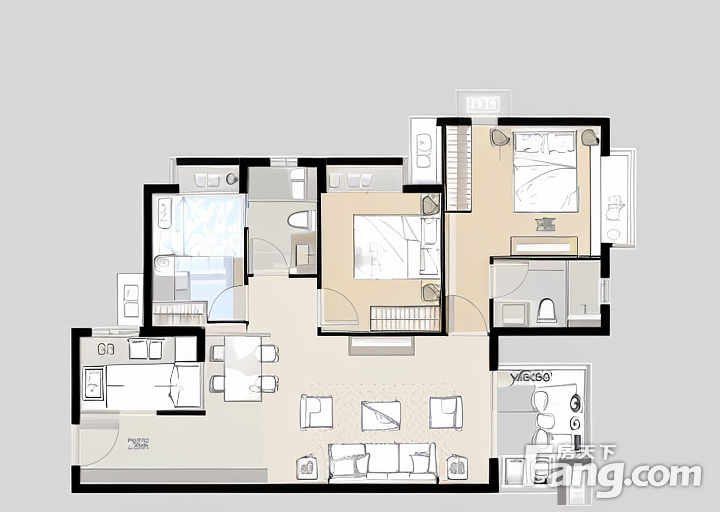户型齐全,主打户型方正,采光充足,主卧带卫三居