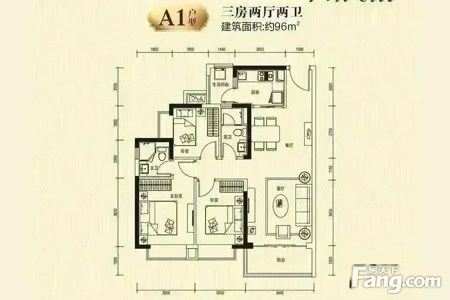 户型齐全,主打户型方正,主卧带卫,双阳台三居