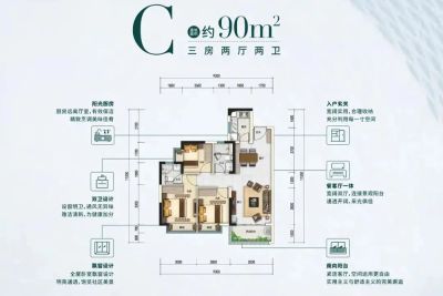 户型齐全,主打南北通透,采光充足,三开间朝南,主卧带卫,观景飘窗,明厨明卫,大面宽阳台三居