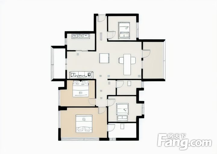 户型齐全,主打动静分离,三开间朝南,主卧带卫,观景飘窗,U型厨房,大面宽阳台三居