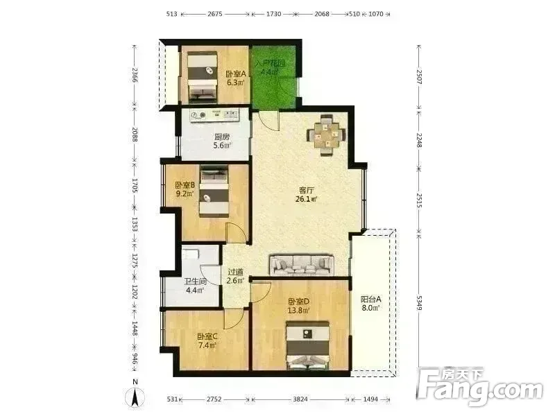 户型齐全,主打户型方正,明卫,主卧朝南三居