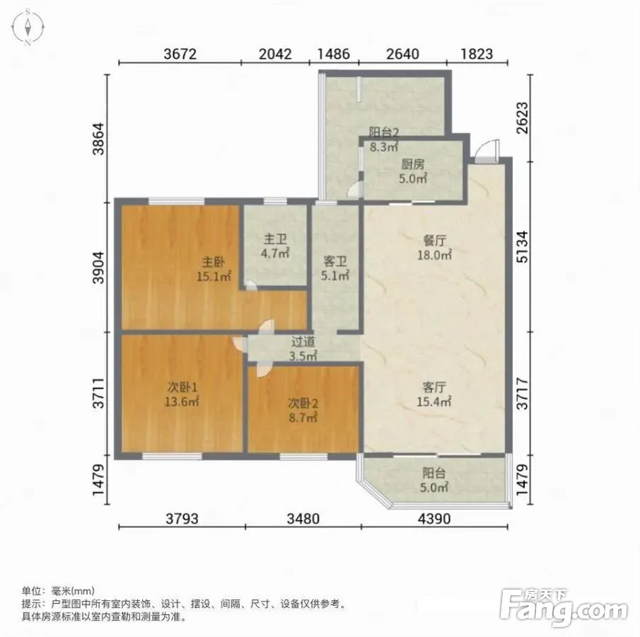 户型齐全,主打客厅朝南,主卧朝南三居