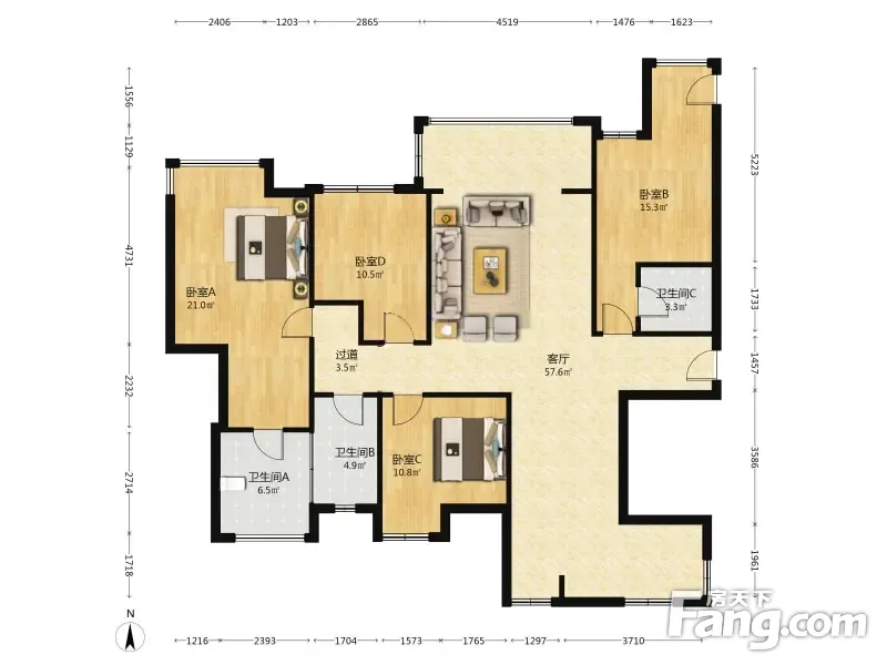 房屋拥有相对宽松的尺寸,布局通透,动静分离,设计豪华