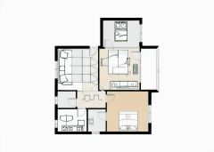 万盛花园邮局宿舍户型主要有110平-110平的户型方正,明卫,明厨,客厅朝南,全明格局的三居 。
