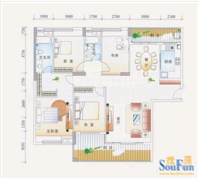 户型齐全,主打明卫三居