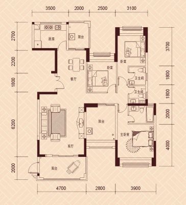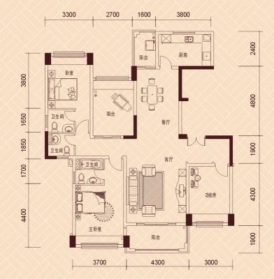 户型齐全,主打明卫,主卧朝南三居
