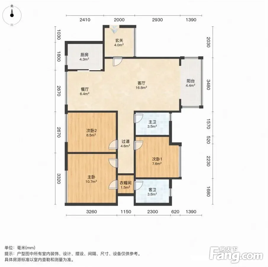 户型齐全,主打南北通透,带衣帽间二居