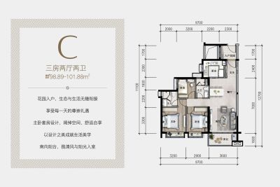 户型齐全,主打户型方正,动静分离,观景飘窗三居