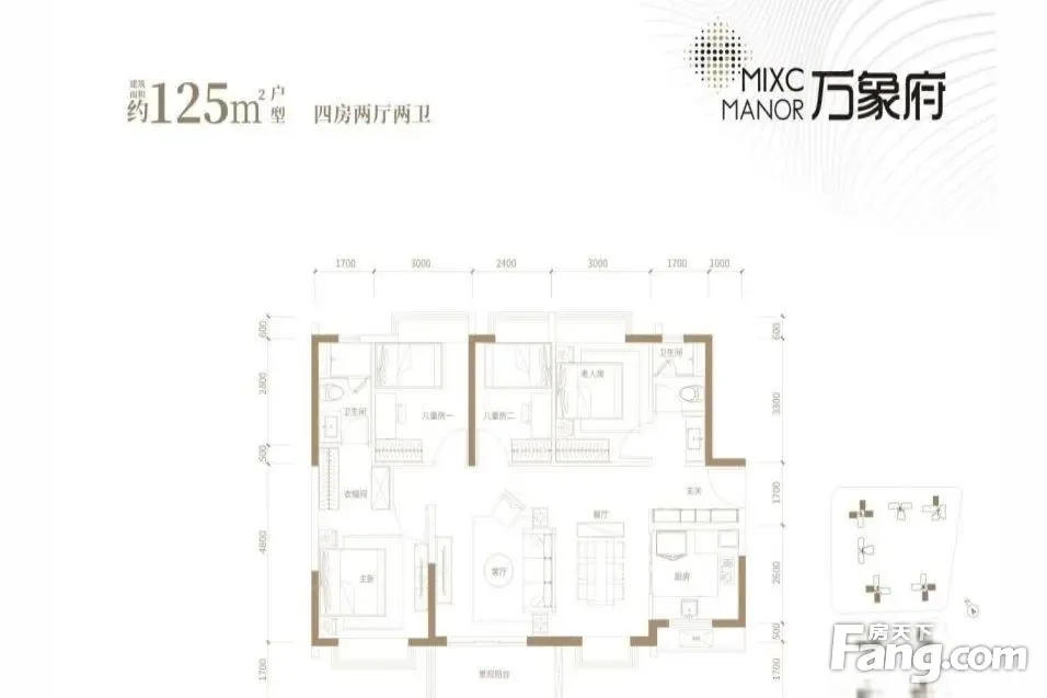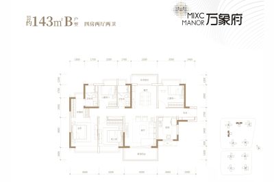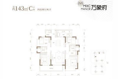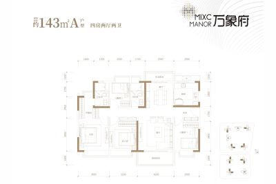 万象府户型主要有125平-143平的户型方正,主卧带卫,观景飘窗,卧室带阳台,带衣帽间,U型厨房,明厨明卫,大面宽阳台的四居 、95平-95平的动静分离,客厅朝南,主卧带卫,观景飘窗,明厨明卫,大面宽阳台的三居 。
