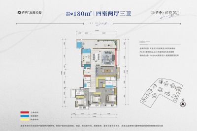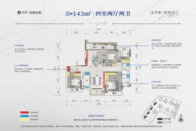 户型齐全,主打南北通透,户型方正,动静分离,主卧套间,观景飘窗,U型厨房,干湿分离,双阳台四居