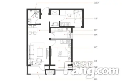 户型齐全,主打户型方正,动静分离二居