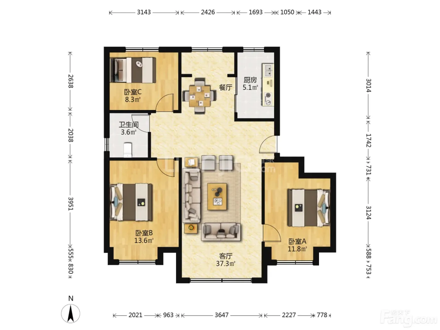 3室2厅1卫