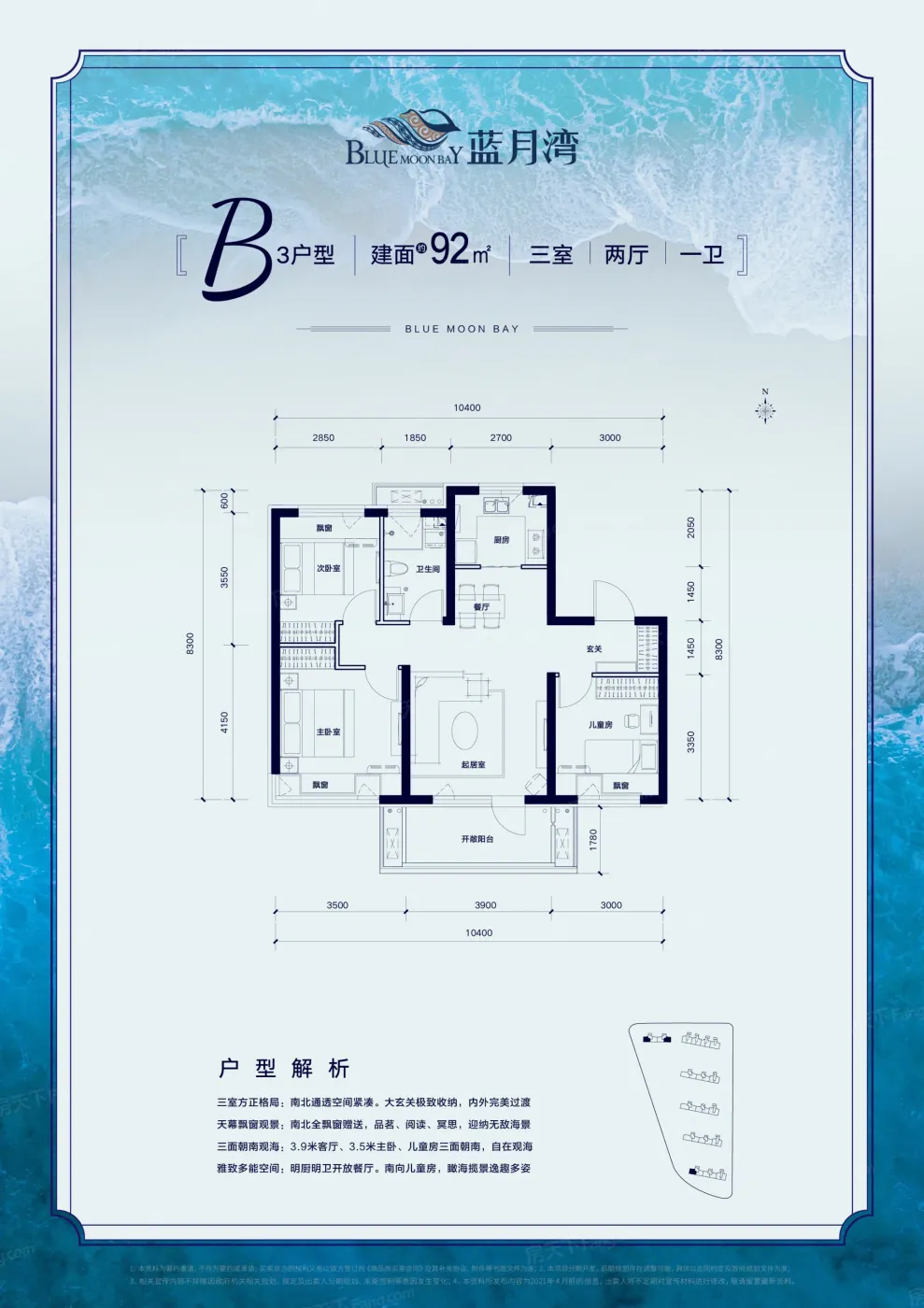 央企蓝月湾精装裸房通厅客厅带阳台3室一线海景房品质封闭小区