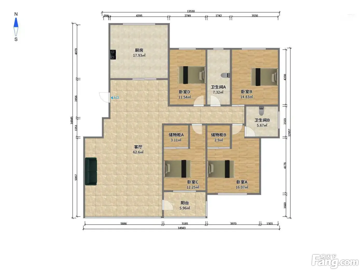 4室1厅2卫