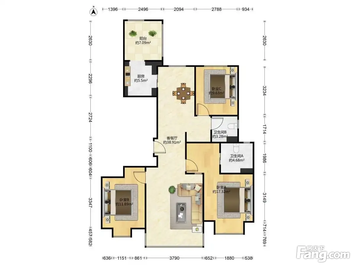 户型齐全,主打明卫,客厅朝南,双卧朝南三居