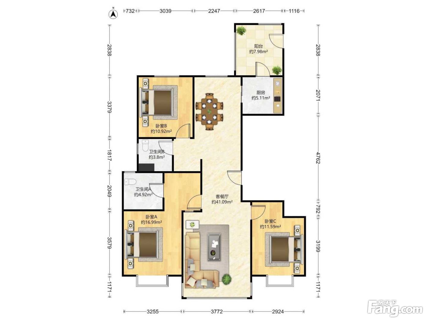 户型齐全,主打明卫,客厅朝南,双卧朝南三居