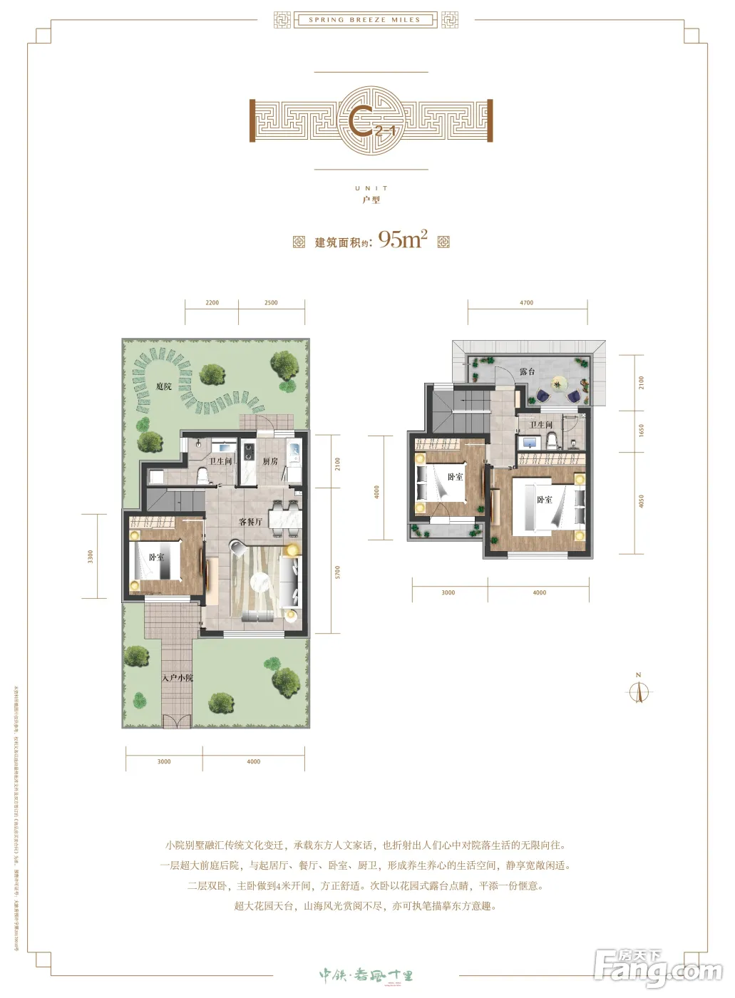 中铁春风十里95平米160万两层中式精装院落别墅藏风纳气上佳