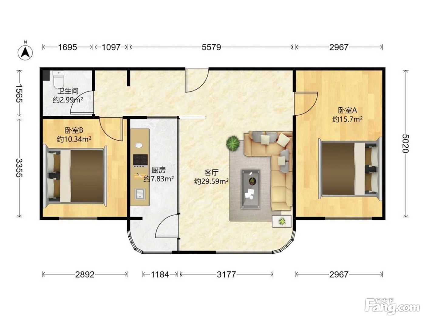 户型齐全,主打户型方正,明卫,客厅朝南,双卧朝南,主卧朝南二居