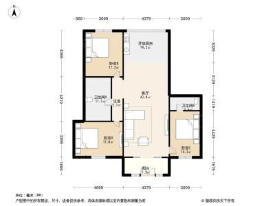 户型齐全,主打户型方正,明卫,明厨,客厅朝南,全明格局三居
