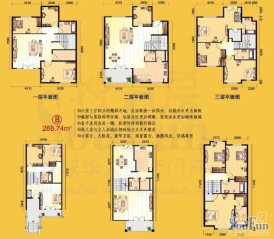 海昌枫桥园户型主要有208平-300平的主卧朝南,明卫的其他居 、208平-264平的户型方正的四居 。