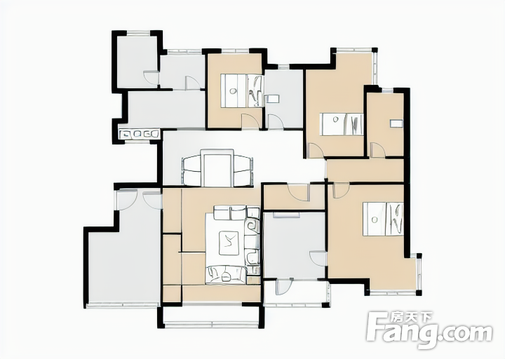 户型齐全,主打户型方正,明厨,明卫,客厅朝南,全明格局,主卧朝南三居