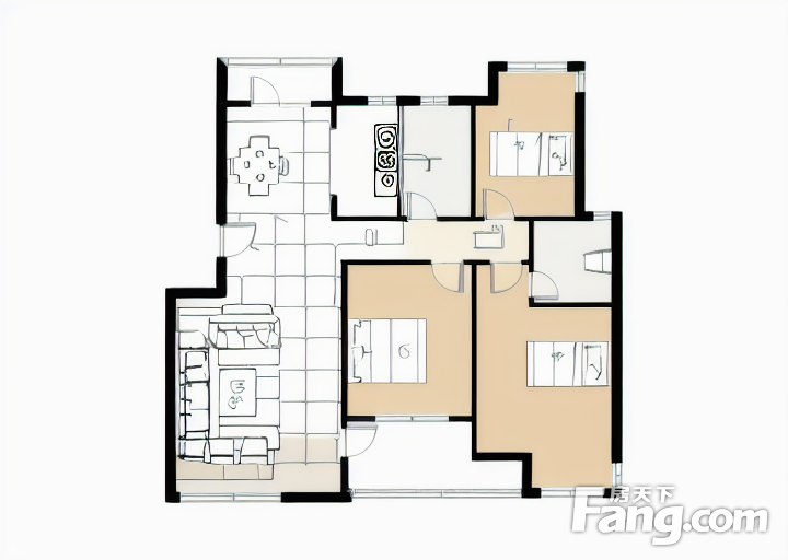 户型齐全,主打明卫,客厅朝南,双卧朝南二居