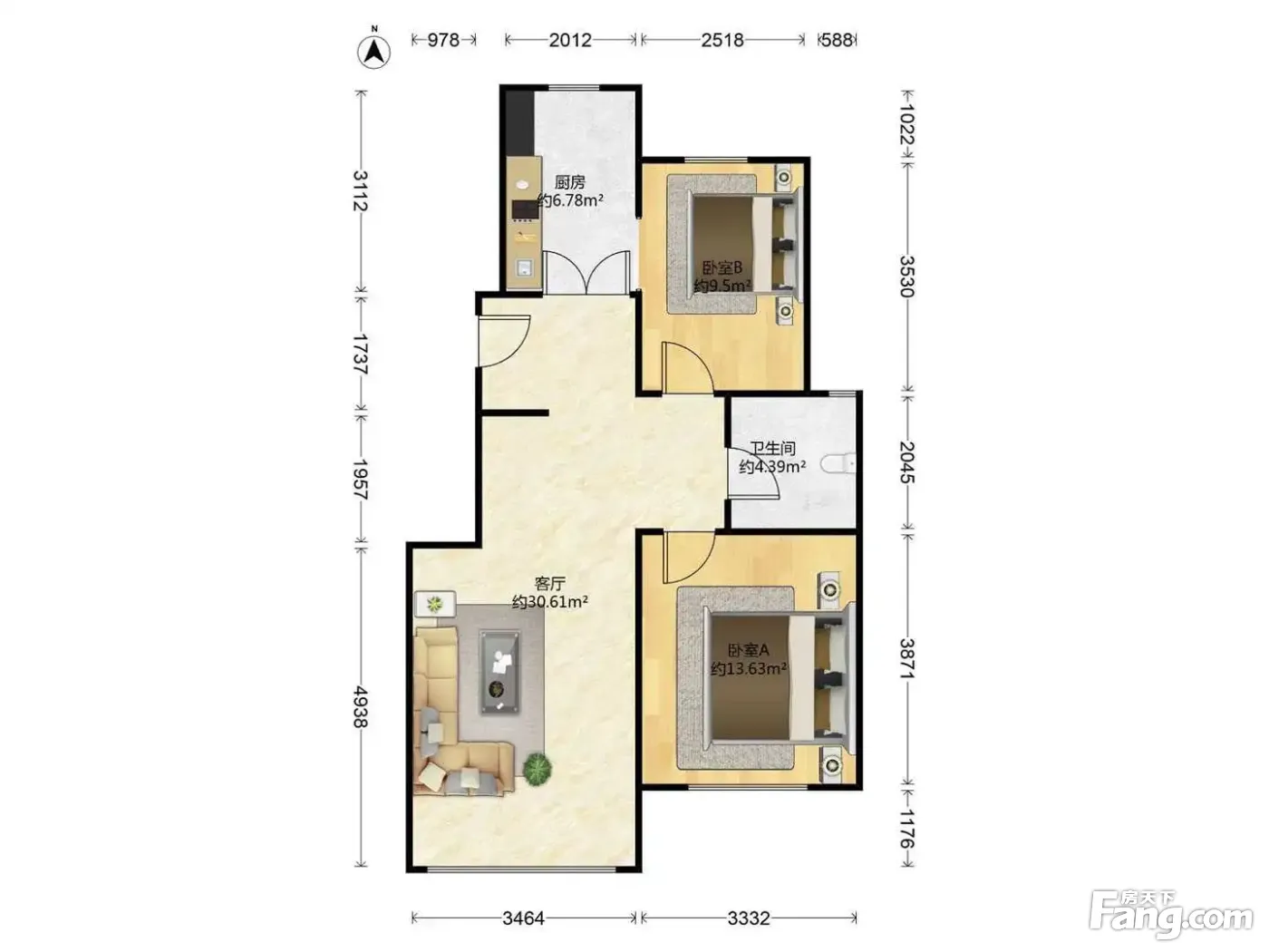 户型齐全,主打户型方正,明卫,客厅朝南,双卧朝南,主卧朝南二居